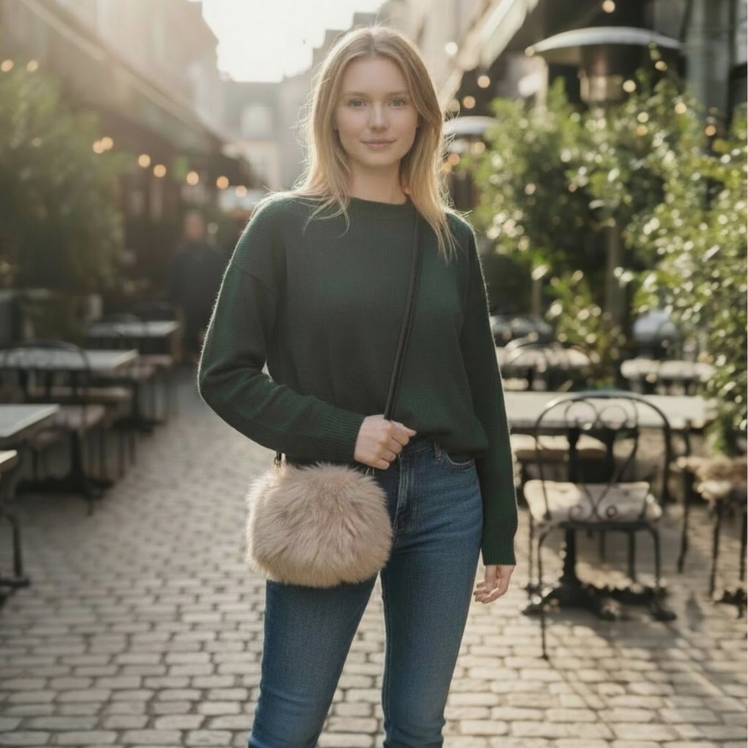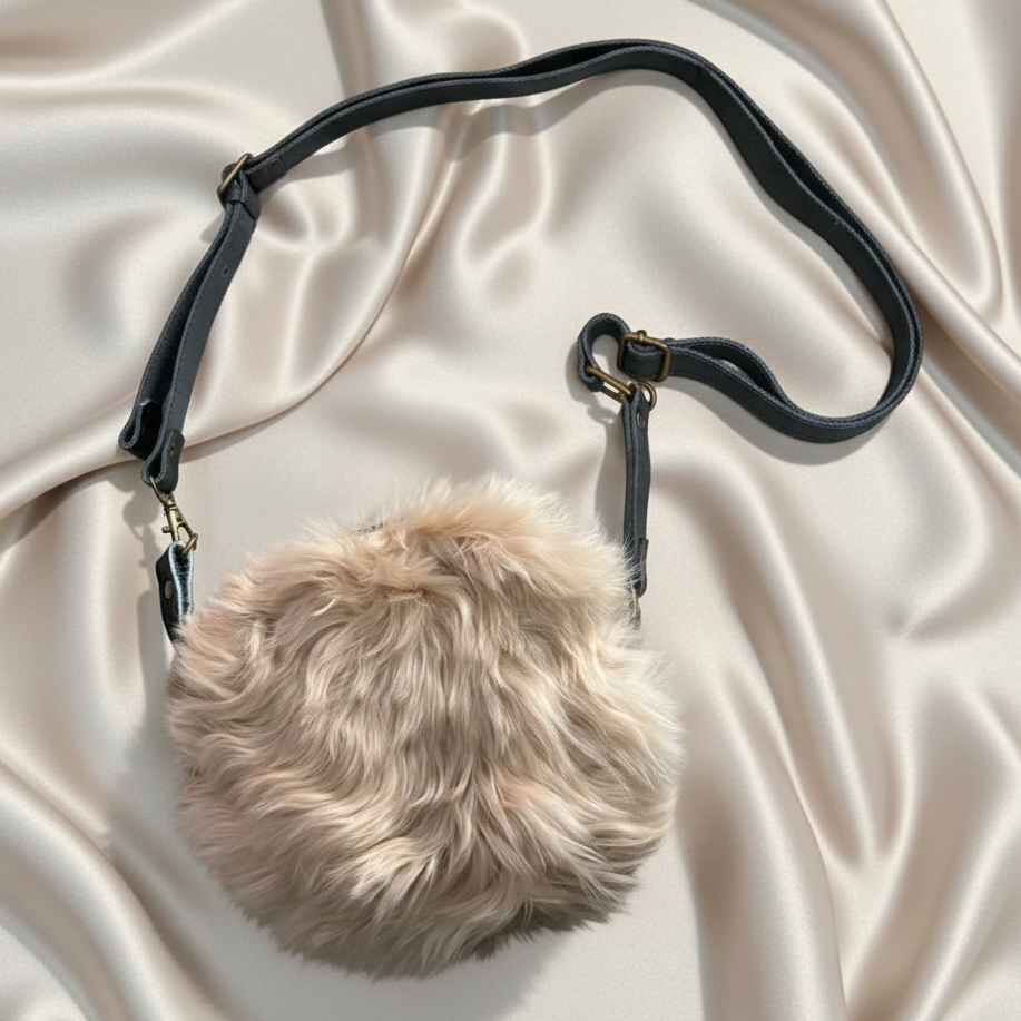 Soft, cozy, and effortlessly chic, this beige baby alpaca fur crossbody bag is handmade in Cusco, Peru with a clean, timeless look. The main compartment measures 8 x 8 inches, making it the perfect small bag for your essentials. The black leather long strap lets you wear it comfortably crossbody, and the fully lined interior gives it a beautiful finish and extra durability.